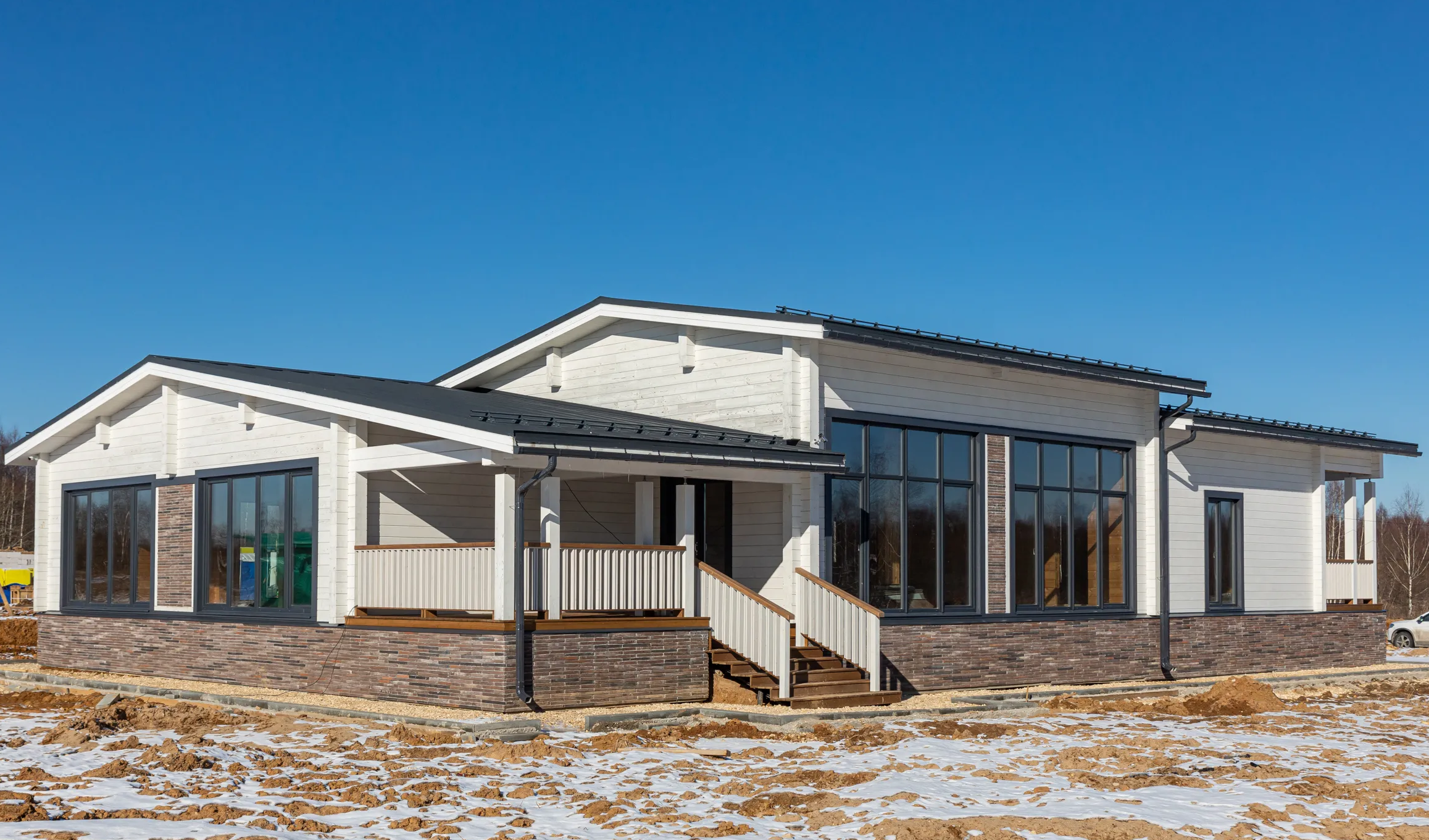 Меблирован и открыт для посещения шоурум, в котором можно оценить качество строительства и отделочных материалов, а также посмотреть планировку дома Райт 256.